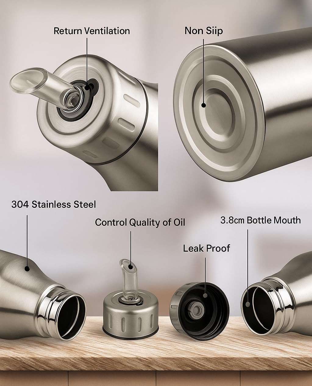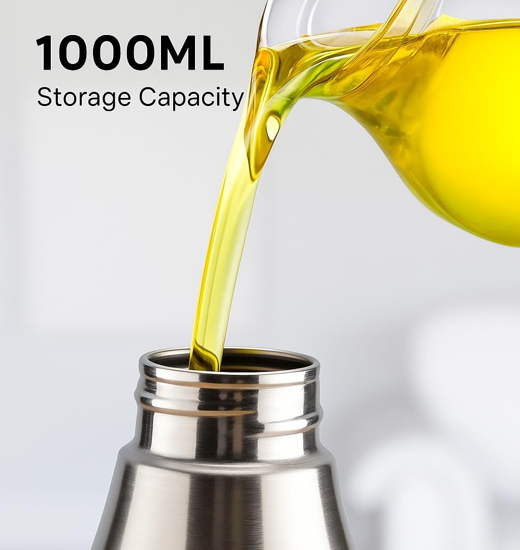 UncategorizedOil Dispenser 1 Litre Steel – Stainless Steel Oil Bottle for Kitchen – Cooking oil Container/Pourer – Leakproof & Long Lasting (1 Ltr, Silver)